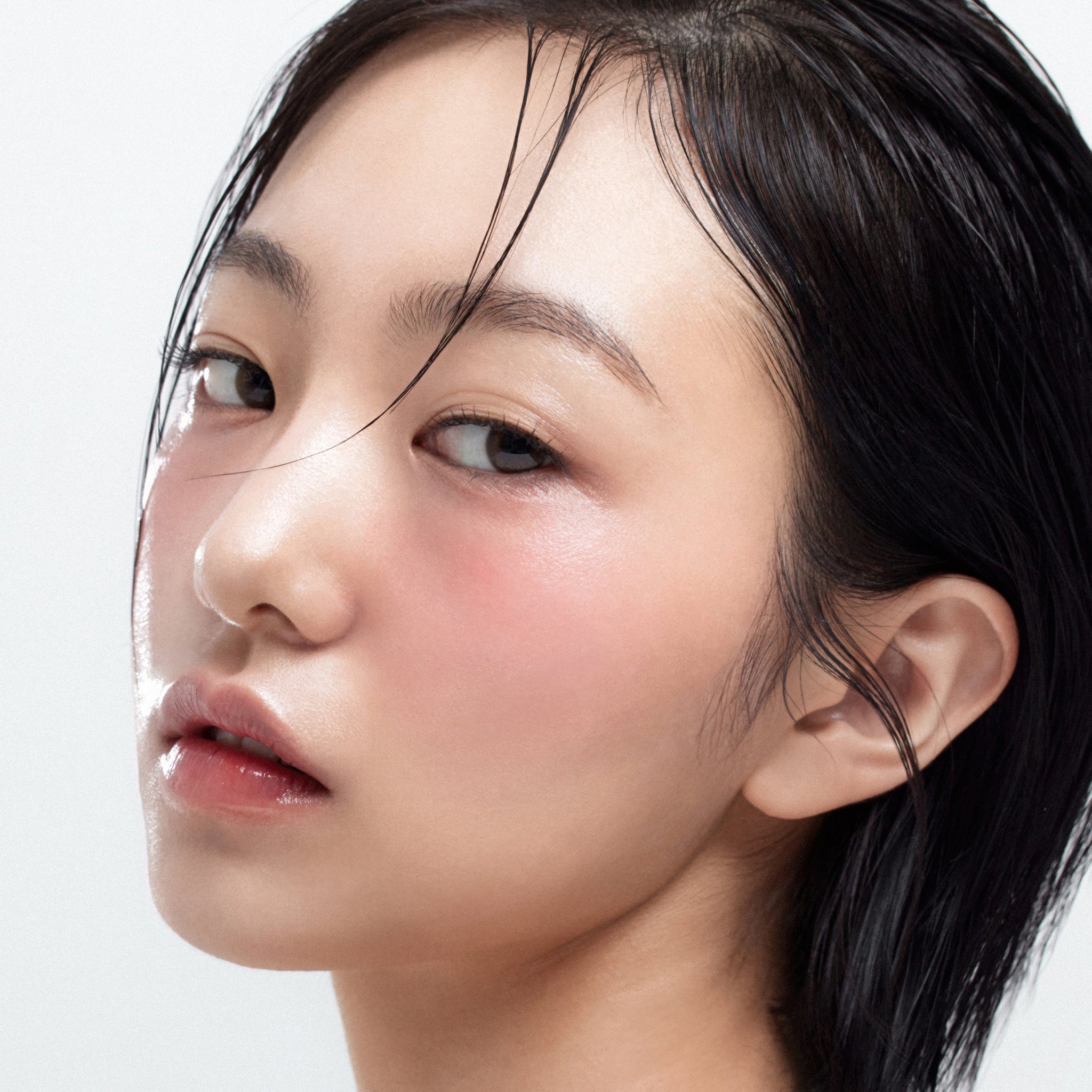 Model wearing HOUSE OF HUR Moist Ampoule Blusher 10ml for a dewy and vibrant look