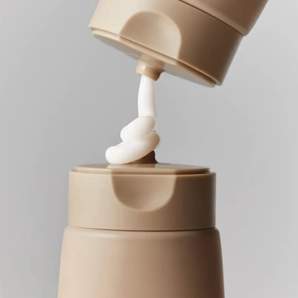 HOLITUAL Relaxed Foot Treatment Cream 130ml being dispensed from a tube, showcasing its texture and packaging design.